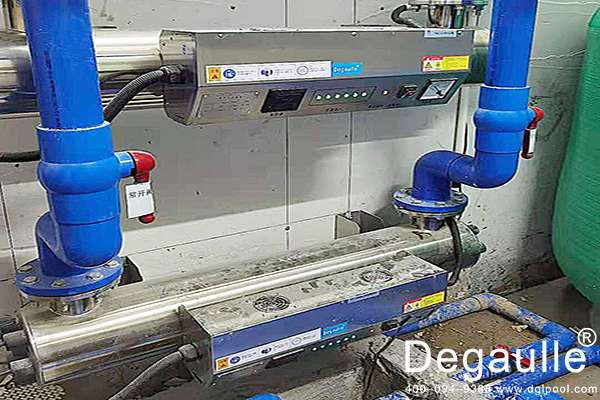 因为这个项目是亲子游泳馆,对于消毒标准有更高的要求,无氯消毒、不使用化学物质消毒便是其中一条。因此采用1台可覆盖160m³的铜银离子消毒器+30m³/h紫外线杀菌消毒器配合使用。