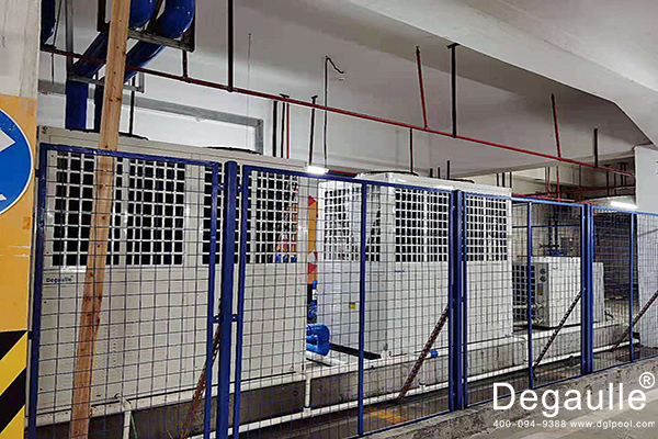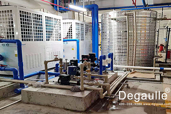 除了保证游泳池水质,游泳池的水温也非常重要,在过低的水温玩水、游泳,儿童容易患感冒、身体不适等问题。因此游泳池恒温系统是非常有必要的,这个项目2台25匹的空气源热泵用于维持游泳池的水处于恒温中。另外1台10匹的空气源热泵用于淋浴房。