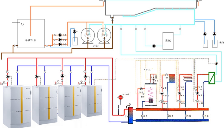 目前铜、银离子技术在美、英等发达国家普遍应用,铜银离子消毒已成为一种成熟技术,试验证明,0.4mg/1的铜离子和0.04mg/1的银离子及一定量的其它消毒剂联合使用效果最佳,特别是在饮水方面所做的试验,其浓度都是在低于饮用生标准的情况下取良好效果的,所以该技术在饮用水和循环冷却水工程上已有大量使用。铜银离子消毒具有以下的优点:不产生毒副产品、无二次污染;无色、无味、化学稳定性强;不受温度影响,可长时间维持杀菌效果;无须专人管理,免维修。